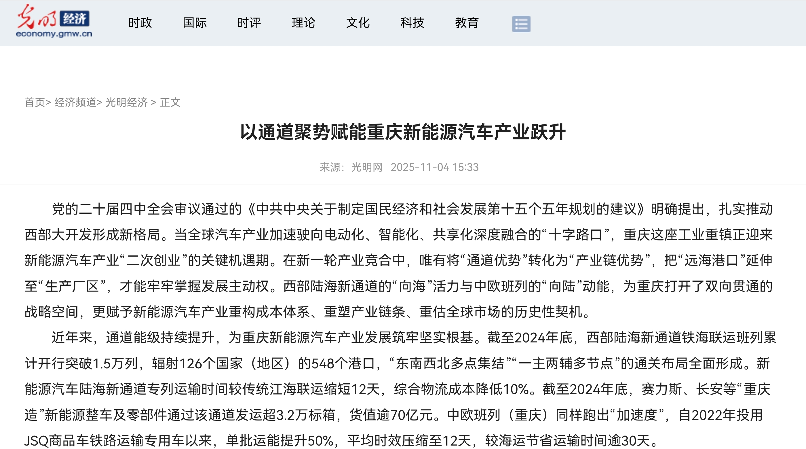以通道聚势赋能重庆新能源汽车产业跃升